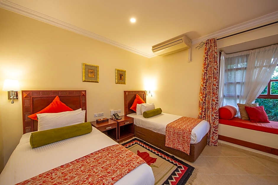 Indulge in the spacious 538 sqft Double Room with a cozy Queen size bed, where you can enjoy a garden view from your balcony or terrace. Pamper yourself with complimentary toiletries and relax in the bathtub.